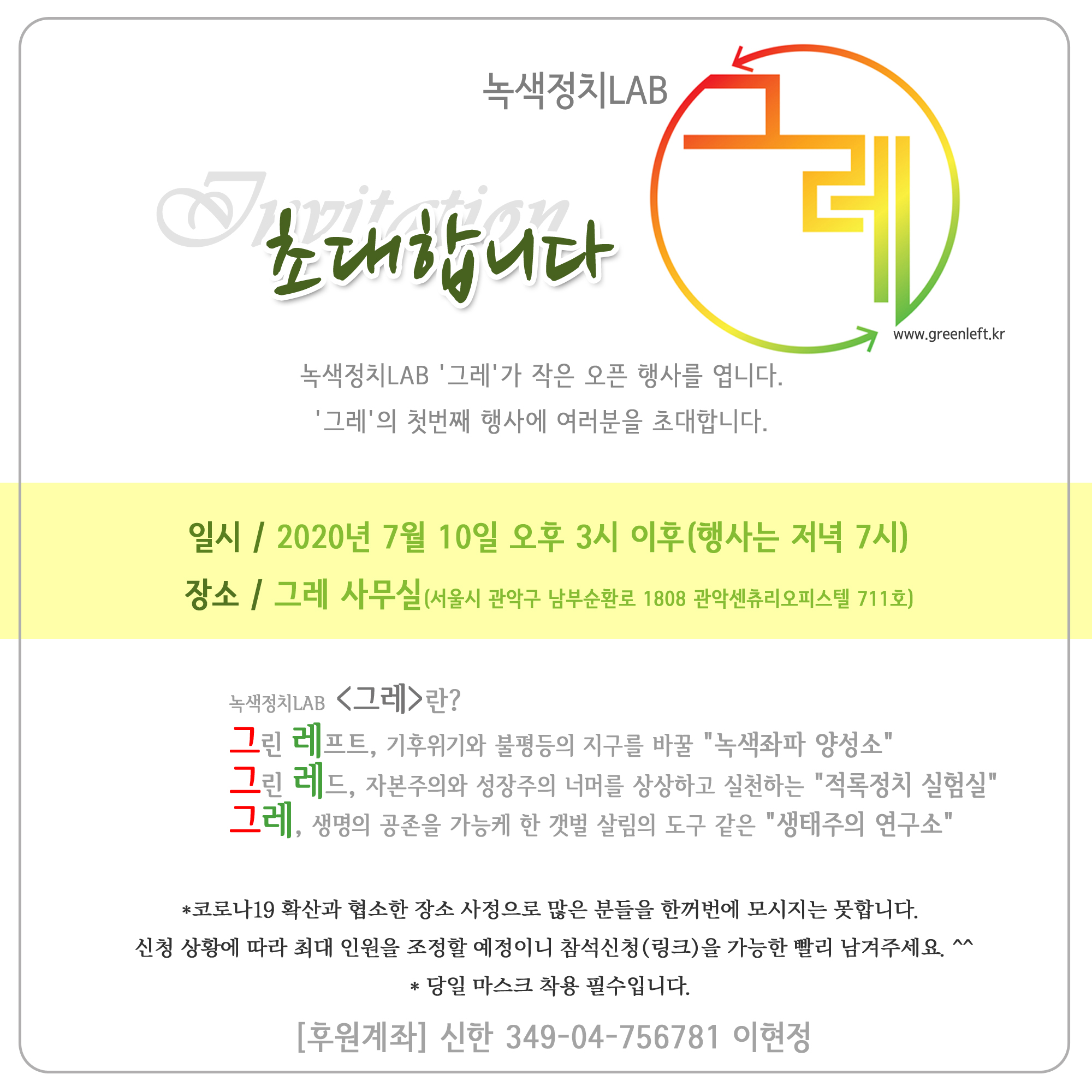 녹색정치LAB '그레'가 작은 오픈 행사를 엽니다.