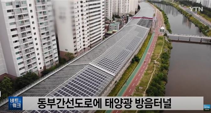 이에 이런 제안을 하나 하고 싶다. 정부가 나서서 경부고속도로를 태양광 도로로 만들자. 도로는 태양광 발전 시설을 설치하기에 더 없이 좋은 장소다. 도로의 LOS(Level Of Service) 등급을 높이기 위해 절성토 작업이 완료되어 있으며, 완충녹지 덕분에 음영지역이 많지 않다. 또한, 주변으로 소음도 차단되는 부수적인 효과까지 누릴 수 있다. 주변 부지와 사면까지 활용하면, 더 효과를 얻을 수도 있다. 실제 사례도 있다. 올해 6월 서울시는 동부간선도로 노원구 상계 8동부터 의정부까지 480m 구간에 태양광 방음터널을 설치했고, 발전설비 용량은 연간 83만 kW(약 300가구 사용량)에 달한다.(15)